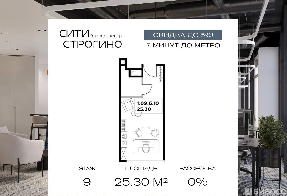 В продаже от застройщика комфортабельный Private-офис площадью 25.3 м на 9 этаже в премиальном бизнес-центре Сити Строгино. Срок сдачи - 2028 год.