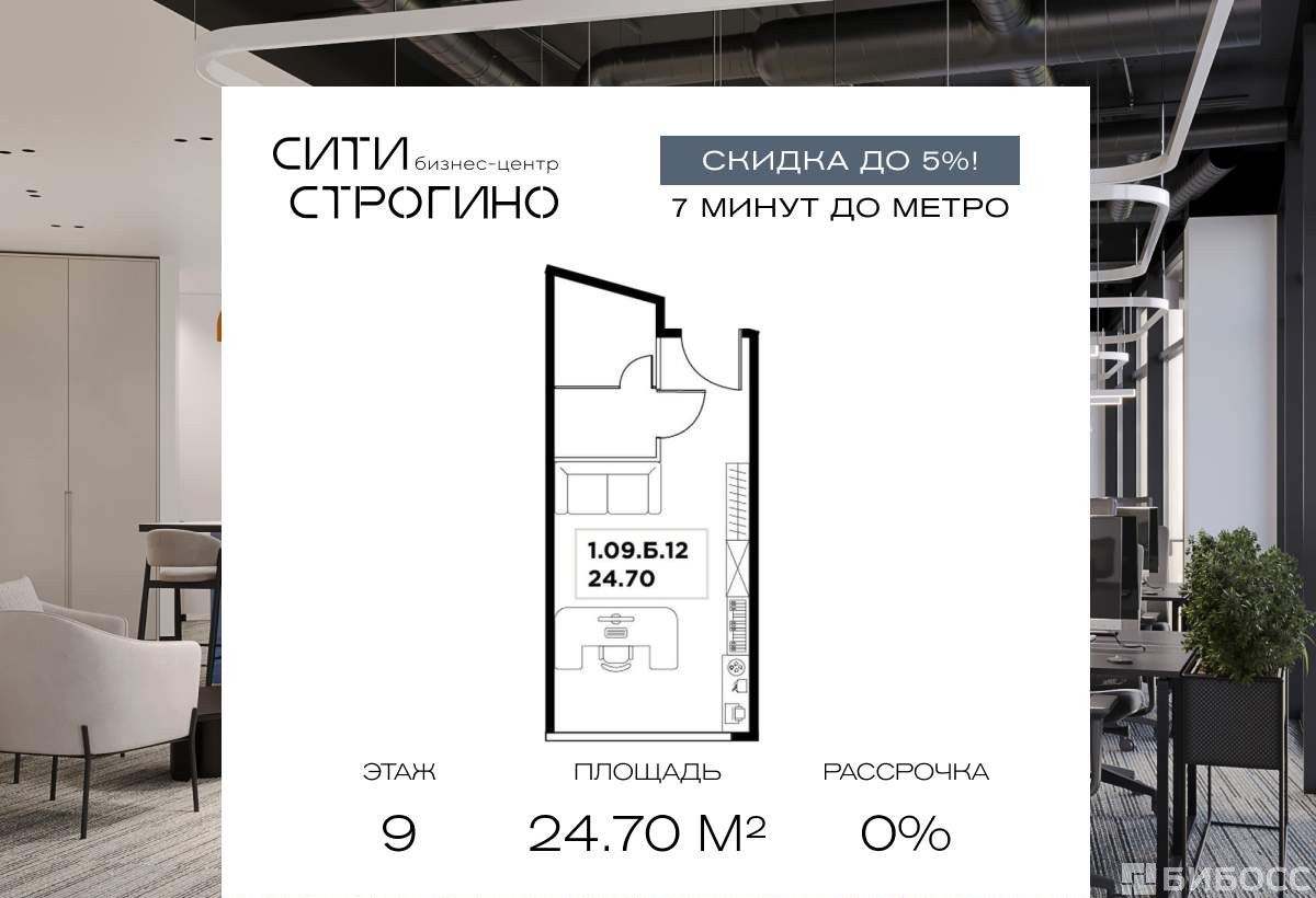 В продаже от застройщика комфортабельный Home-офис площадью 24.7 м на 9 этаже в премиальном бизнес-центре Сити Строгино. Срок сдачи - 2028 год.