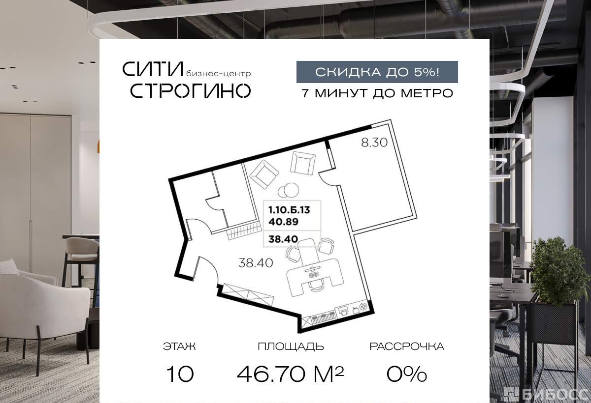 В продаже от застройщика комфортабельный Home-офис площадью 46.7 м на 10 этаже в премиальном бизнес-центре Сити Строгино. Срок сдачи - 2028 год.