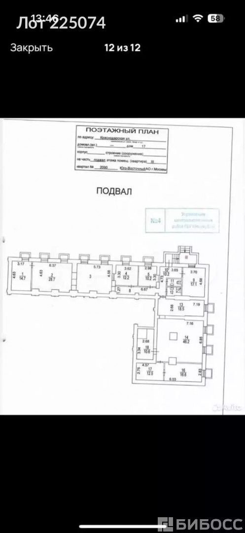 ==ЛОТ 225074 == ОТ СОБСТВЕННИКА, БЕЗ КОМИССИИ. Сдается в аренду помещение свободного назначения общей площадью 190м2 , расположенное в подвальном этаже жилого 5 ти этажного здания, по адресу: Москва, Краснодарская улица, 17 (ЮВАО/район Люблино), ближайщее метро Люблино. Ремонт под лофт за выездом арендатора, коммуникации центральные, электрическая мощность 20 кВт, естественная вентиляция, система противопожарной безопасности , высота потолка от 2,7 метра, мокрая точка, с/у, планировка смешанная (см. план БТИ), режим работы 24/7, отдельная входная группа со стороны улицы, Рассматривается любой вид деятельности по согласованию в рамках вида разрешенного использования (назанчение- свободное) : офис , кибер клуб, бытовое обслуживание и другое). Прямой договор, ЮЛ, УСН, каникулы, ставка 1500 руб./м2 в мес., возможна субаренда от 5 лет, КУ по факту потребления, условия обсуждаются. ЗВОНИТЕ, ОПЕРАТИВНАЯ ИНФОРМАЦИЯ И ОРГАНИЗАЦИЯ ПОКАЗА.