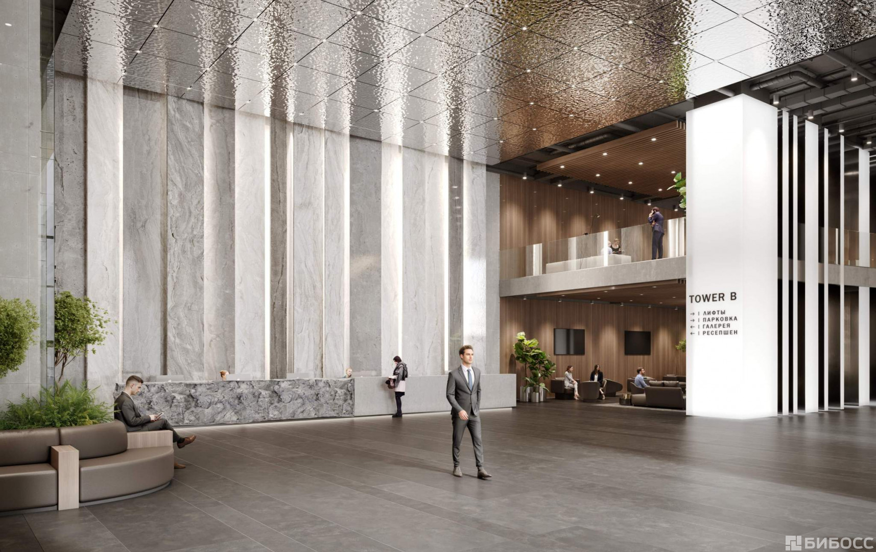 Гранд-лобби 1500 м, высота 9 м - знаковое пространство с интерьерами от бюро UNK corporate interiors.