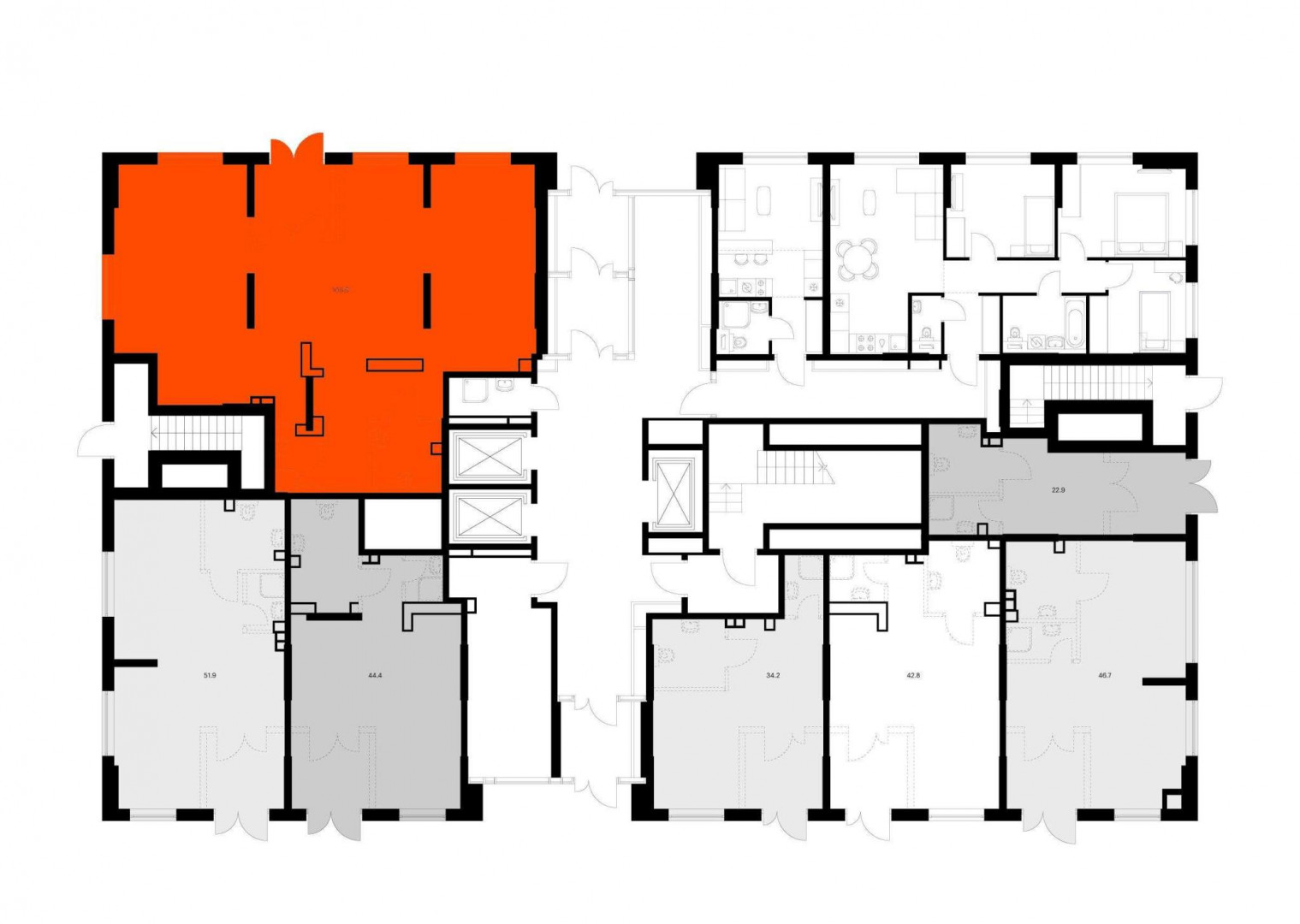 - Открытая планировка и возможность объединения помещений