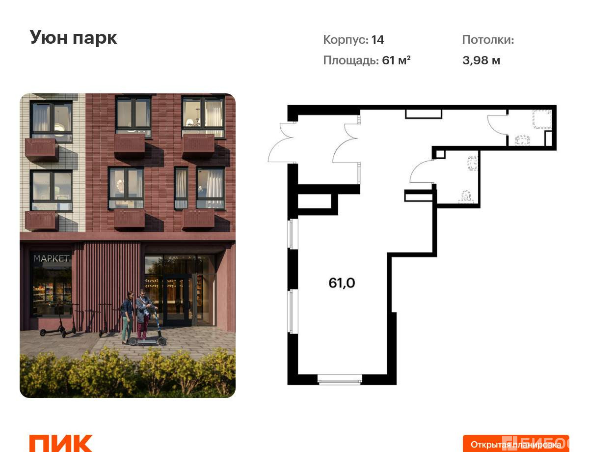 Площадь: 61 м²