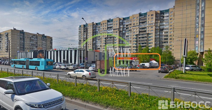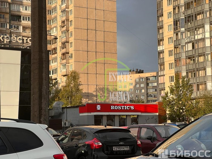 Окружение - густонаселенный жилой массив; рядом остановка общественного транспорта, пешеходный переход, съезд с КАД.