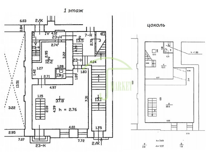 * помещение занимает 1-й и цокольный этажи