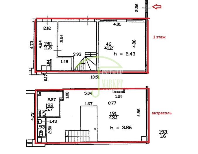 - помещение занимает 2 этажа
