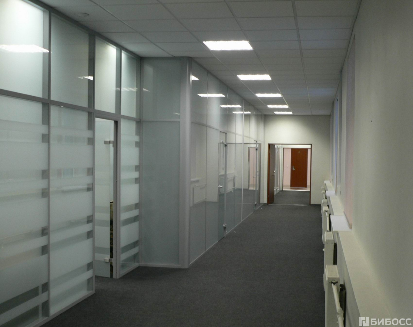 Офис расположен в центре "Глория", общая площадь здания 5284 м2, участок находится в собственности, доступ в здание осуществляется по пропускам, в офисе центральное кондиционирование, вентиляция офиса - приточная, автономное отопление, пожарная сигнализация.