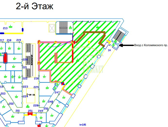 Вход в помещение - из ТК и дополнительный с Коломяжского проспекта, что усиливает визуальную привлекательность и удобство для клиентов.
