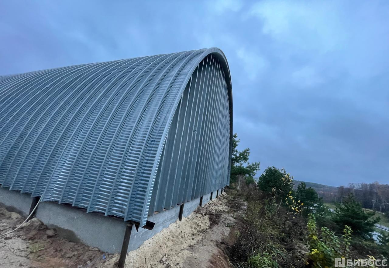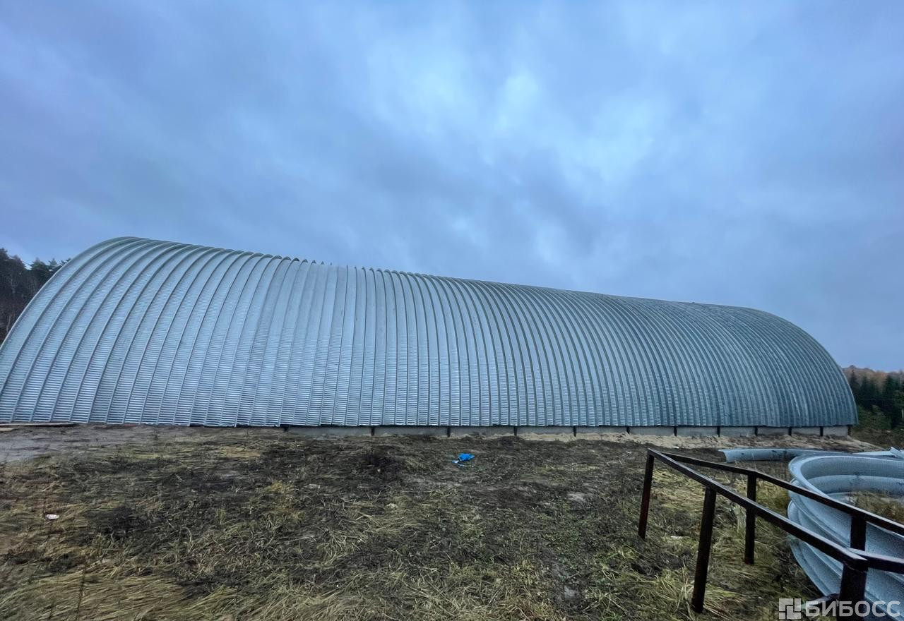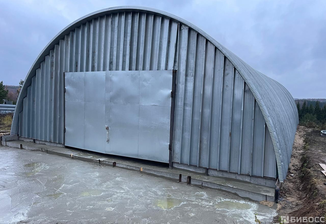 Продается бескаркасный арочный ангар площадью 460 м2. Не утепленный. Основной материал - рулонная сталь 1 класса, конструкция торцевых стен - профилированная рулонная сталь. Пол бетонный. Ворота одни, распашного типа. Ангар находится в д. Азаровка Тульской области. К участку подведено электричество, 800 киловатт, что покрывает потребности большинства производств. Также на объекте имеется бытовка, которую можно приспособить под самые разные цели.[#6362080#]