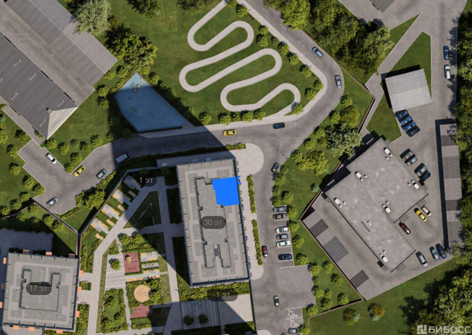 В проекте всего четыре дома и подземный паркинг, в который можно будет спуститься на лифте. Высота домов от 17 до 30 этажей - благодаря переменной этажности солнце будет лучше освещать двор и квартиры.