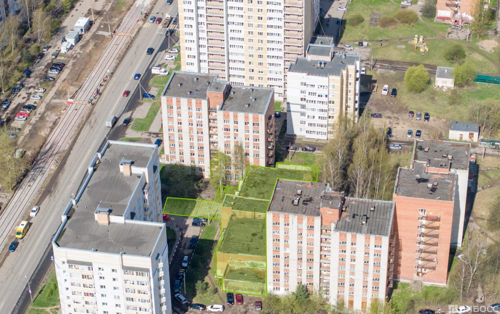Имущественный комплекс расположен в 6-м микрорайоне на второй линии ул. Труфанова за жилыми домами. Окружение сформировано жилой застройкой, торговыми объектами и социальной инфраструктурой. Высокая транспортная доступность обеспечена остановкой общественно транспорта - 61 м, ж/д станцией - 2,32 км.
