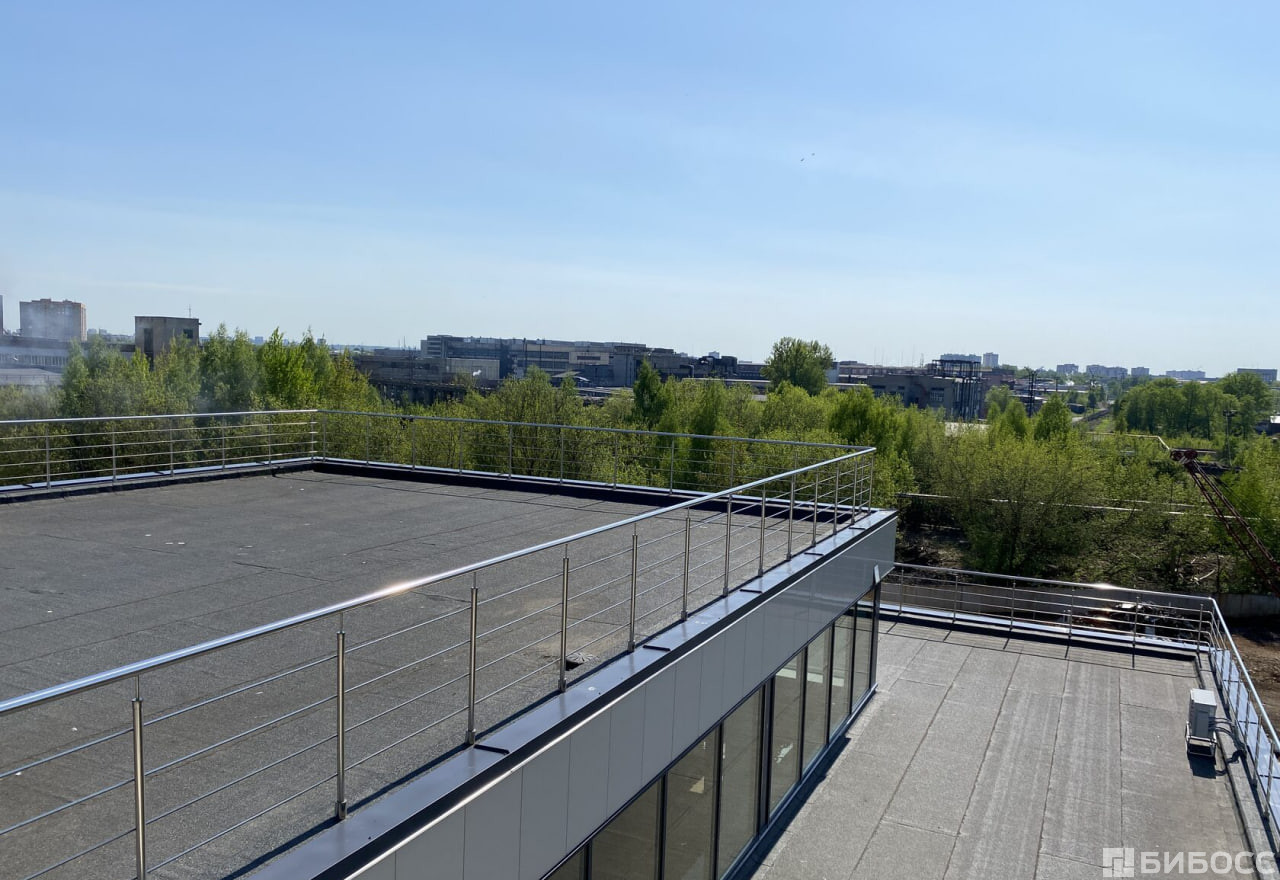 Многоярусная терраса на крыше как место релаксации или рабочее пространство с видом на Волгу.